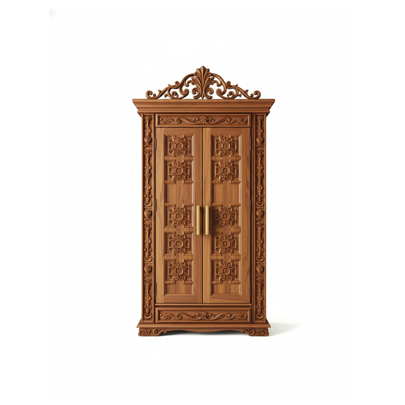 Bring timeless heritage and refined elegance into your living space with our bespoke hand-carved wooden almirah. More than a storage unit, this wardrobe is a statement of traditional craftsmanship—where functional design meets sculptural beauty.