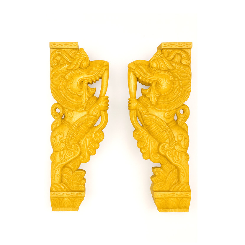 Handcrafted Yali Wall-Mounted Wooden Sculpture (Pair)