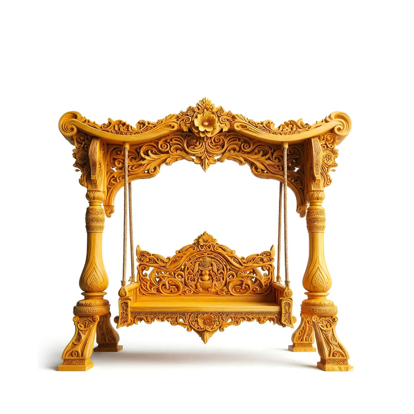 Crafted from premium-grade, naturally seasoned solid wood, the swing beautifully highlights the natural grain and warm tones of the timber. A smooth, hand-polished finish enhances its visual depth while ensuring durability and lasting comfort, allowing the oonjaal to complement both heritage-inspired and contemporary interiors.